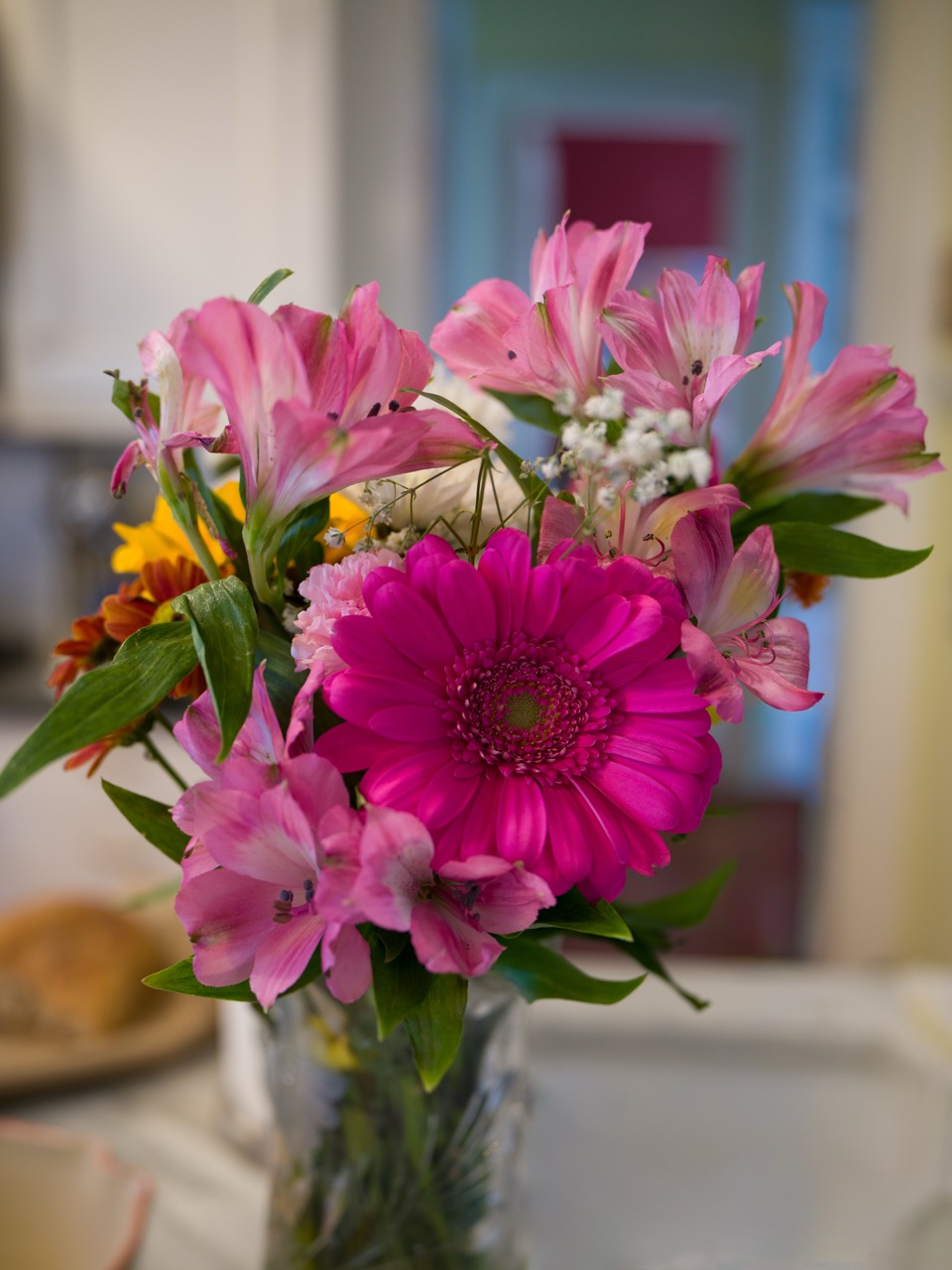 In this photo of my son, the camera had a hard time picking out the face. This is tricky for an eye-detection AF system, but I’ve captured many shots like this and the face detection is more accurate. In both images I’ve set the frame with the paintbrushes between myself and my son to see if the camera would leap onto the brushes. As brightly colored vertical elements, they could easily confuse an AF system, and they did not