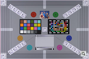 As part of our initiative to provide fairly complete camera test data quickly, we added a new test target and modified an existing one in mid-2006. In April 2009, we further modified one of the targets, to accommodate a new higher-definition resolution target, and to increase the amount of information provided about color rendering, lens quality, some aspects of noise reduction, and de-mosaicing.