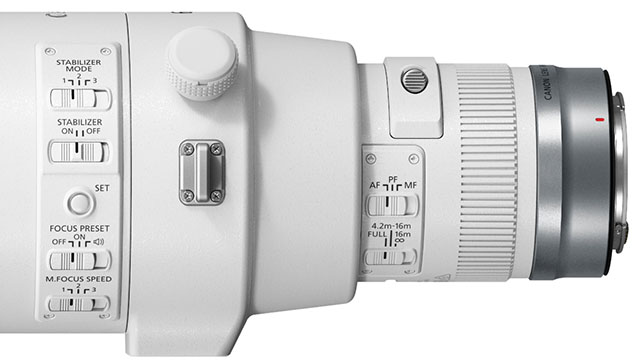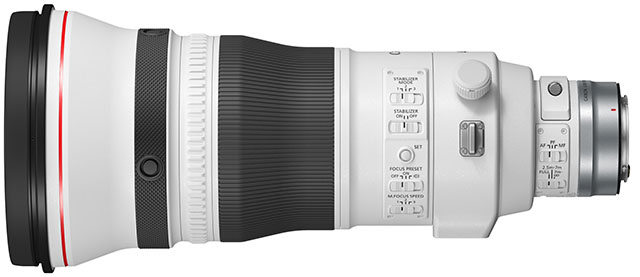 Like the RF 400mm f/2.8, the RF 600mm f/4 has a ring-type USM autofocus system and includes optical image stabilization, which promises up to 5.5 stops of shake correction. Also, like the 400mm lens, the 600mm super tele has a nine-bladed rounded aperture diaphragm.
