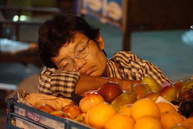 It’s got to be hard work, being a Bangkok street vendor. Get up early to get the food and supplies, schlep everything to your patch of pavement and set up, serve passers-by for hours, then knock it all down, haul it off to wherever you keep it stowed, and then do it all over again the next day. A lifetime insomniac, I envied this woman her ability to drop off for a nap in the middle of the chaos of Bangkok Chinatown at night. (On the other hand, if I had to run a Chinatown street-food business, I’d probably be ready to nap at a moment’s notice as well.)