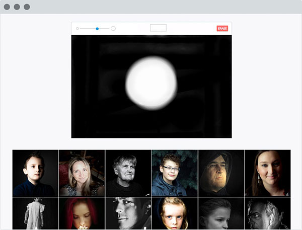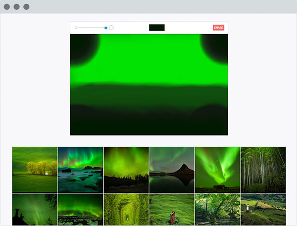 Your drawing can be as simple or detailed as you like, within reason. You can control your brush size and color, and the gallery of suggested images will be updated after each and every brush stroke, allowing you to refine the results by continuing to add more detail.