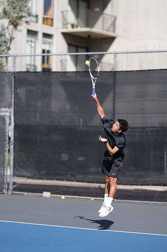 So, the next day started the same way the prior day ended, with sports. It was a sports-centric trip. No complaints here. I love all sports but have little opportunity to photograph them on my own time. We kicked things off with tennis (outdoors) and diving (indoors but with natural light pouring in through large windows and an atrium-style roof) at UCSD. I started at the tennis courts and tested my mettle, trying to capture the tennis ball striking the racket. Not easy to do at 12fps, but much easier at 40fps.