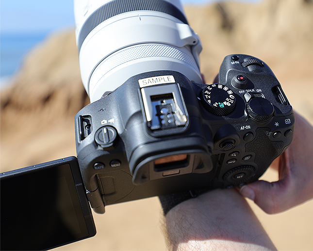 The EVF remains unchanged, too, offering a pleasingly-large 0.5-inch OLED monitor with 3.69-million dots of resolution and a smooth, sharp 120fps refresh rate — making it great for fast-moving subjects. The viewfinder provides a 0.76x magnification ratio and a smooth, sharp 120fps refresh rate. The LCD is the same as in the original R6, with a 3.0-inch vary-angle touchscreen design. The LCD panel has 1.62M dots of resolution and includes Clear View LCD II anti-smudge and anti-reflection coatings.