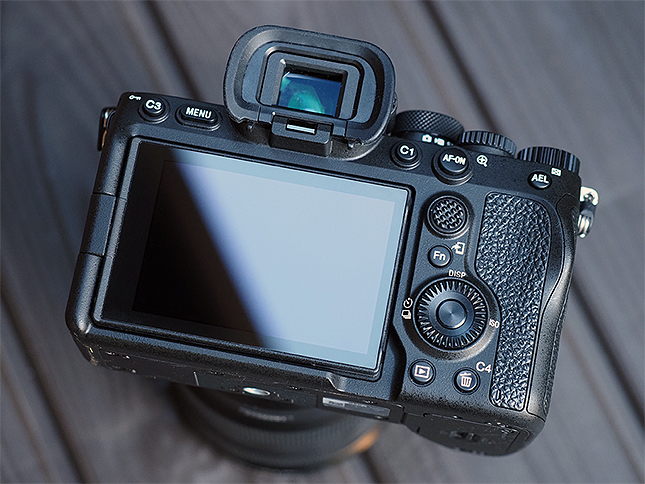 Moving down to the rear of the camera, the A7 IV’s button layout is essentially unchanged compared to its predecessor — with the exception of the aforementioned swapping of the C1 button and video recording button. Several of the button designs are updated and enlarged, matching those of other recent-generation Alpha cameras. The buttons are all slightly larger and generally easier to press. The AF-ON button is notably larger, and the multi-directional joystick control is both bigger and has a new bumpy texture for better grip and operability.
