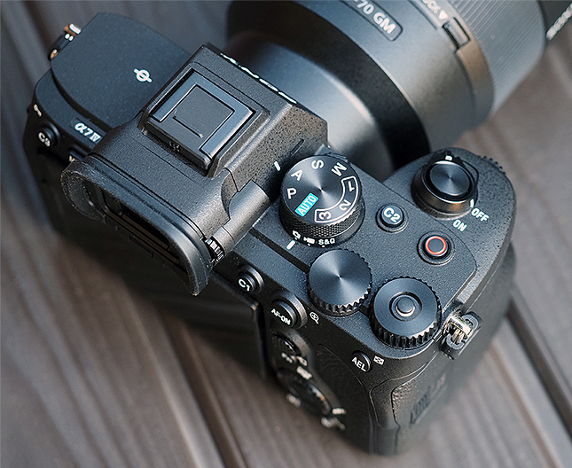 Another minor change to the top controls is that now the C1 custom function button has been replaced by a dedicated video recording button, as we see on the A7S III. Instead, the A7 IV has this second C1 button moved to the back of the camera next to the EVF, where the recording button was on the A7 III.